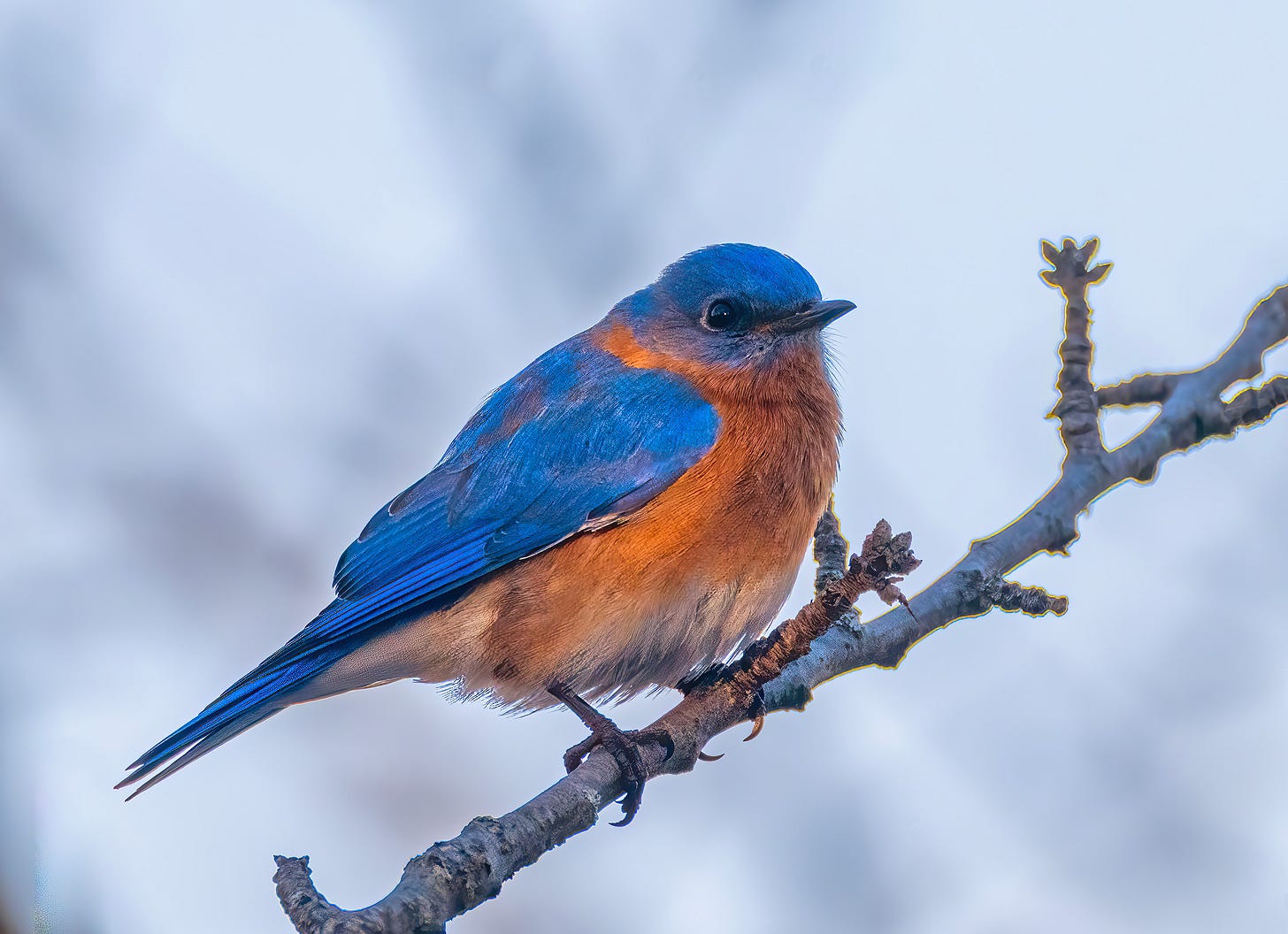 The other day, our bluebirds were out together and posing on the cherry tree for a long time! I’m always amazed by how different the color of his feathers look depending on the type of light around him. This was a partly cloudy day and just like when photographing flowers, colors pop when it’s cloudy with birds!